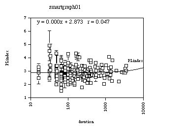 This scatter plot shows that there is no real correlation between the duration (in seconds) of the solar flares and how much hard radiation is given off.